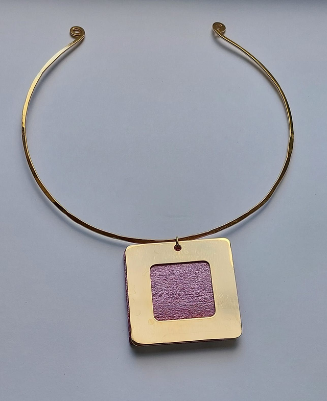 Girocollo "Geometrie" (Quadrato, in pelle e ottone)