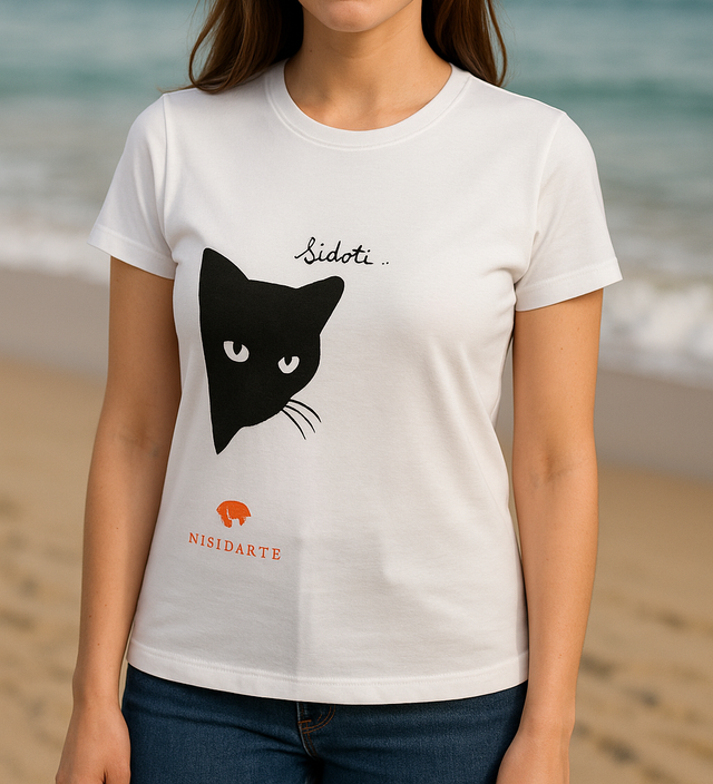 Maglietta "Fidati - Gattino" dipinta a mano dai ragazzi di Nisida